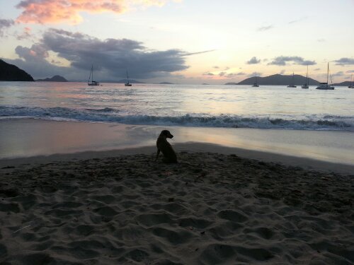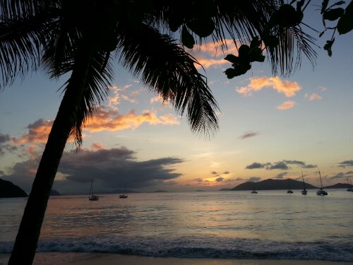 All us happy sea dogs listening to Kapeye at sunset at Myett’s in Cane Garden Bay, Tortola, British Virgin Island.