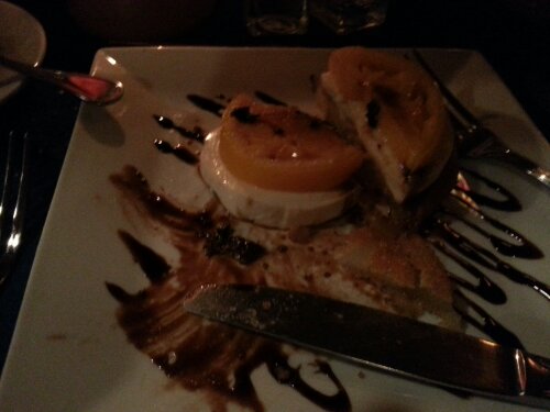 My “half” of the fried green tomato caprese salad. We each had the fresh grilled Anagada lobster. There’ll be time – and room enough – to breathe tomorrow!