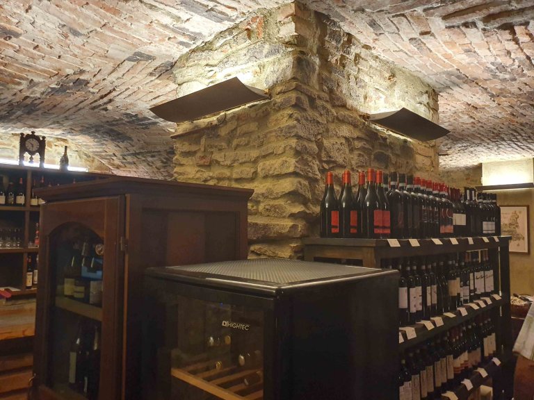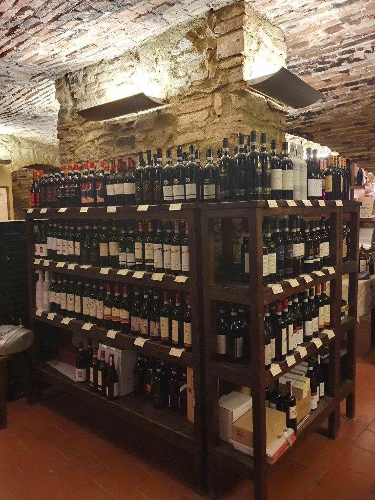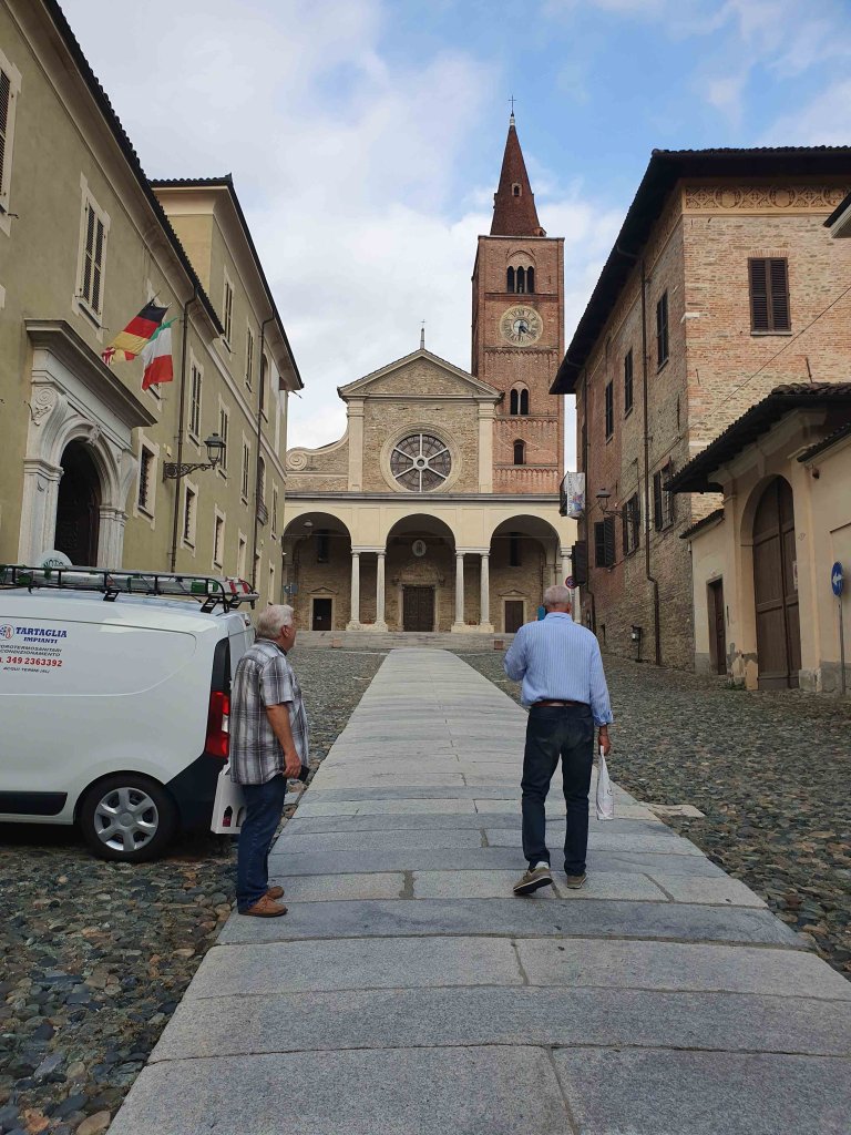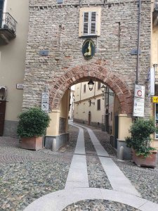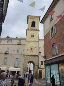 We visited the Enoteca Regionale, beyond the site of the old city gate and draw bridge The cave is a huge warren of arched brick rooms. We were offered a generous taste of the “typical” wine of the Piemonte (“Piedmont” in English) region, “Brachetto.” It’s a sweet desert wine. (And we bought a couple of bottles.)